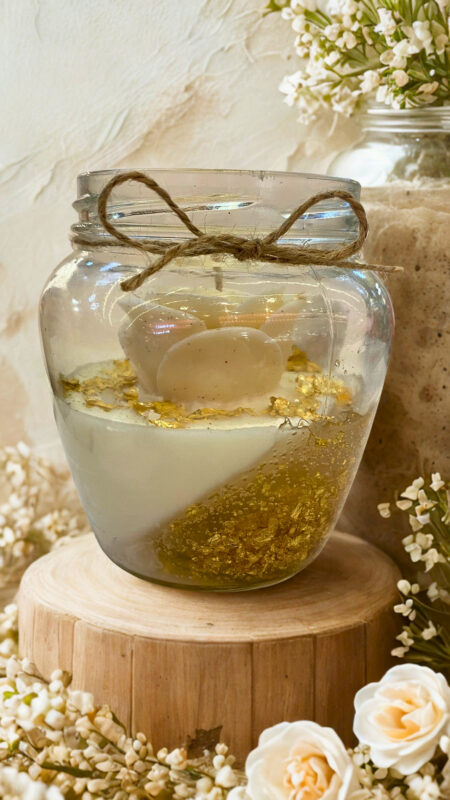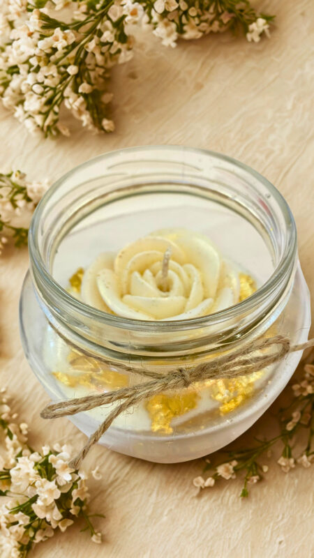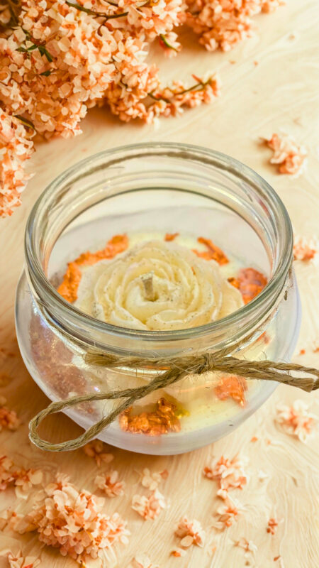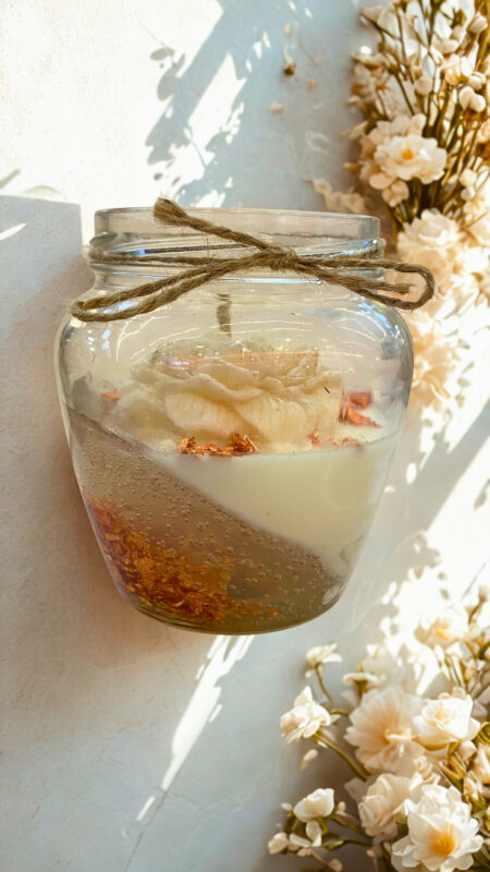 Floral Soy Wax Candle Jasmine & Lavender Scent, Iridescent Glass