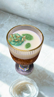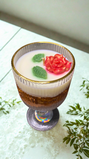 •⁠ ⁠Features: Elegant ribbed glass with a gold rim, topped with a handcrafted wax rose and gold flakes.