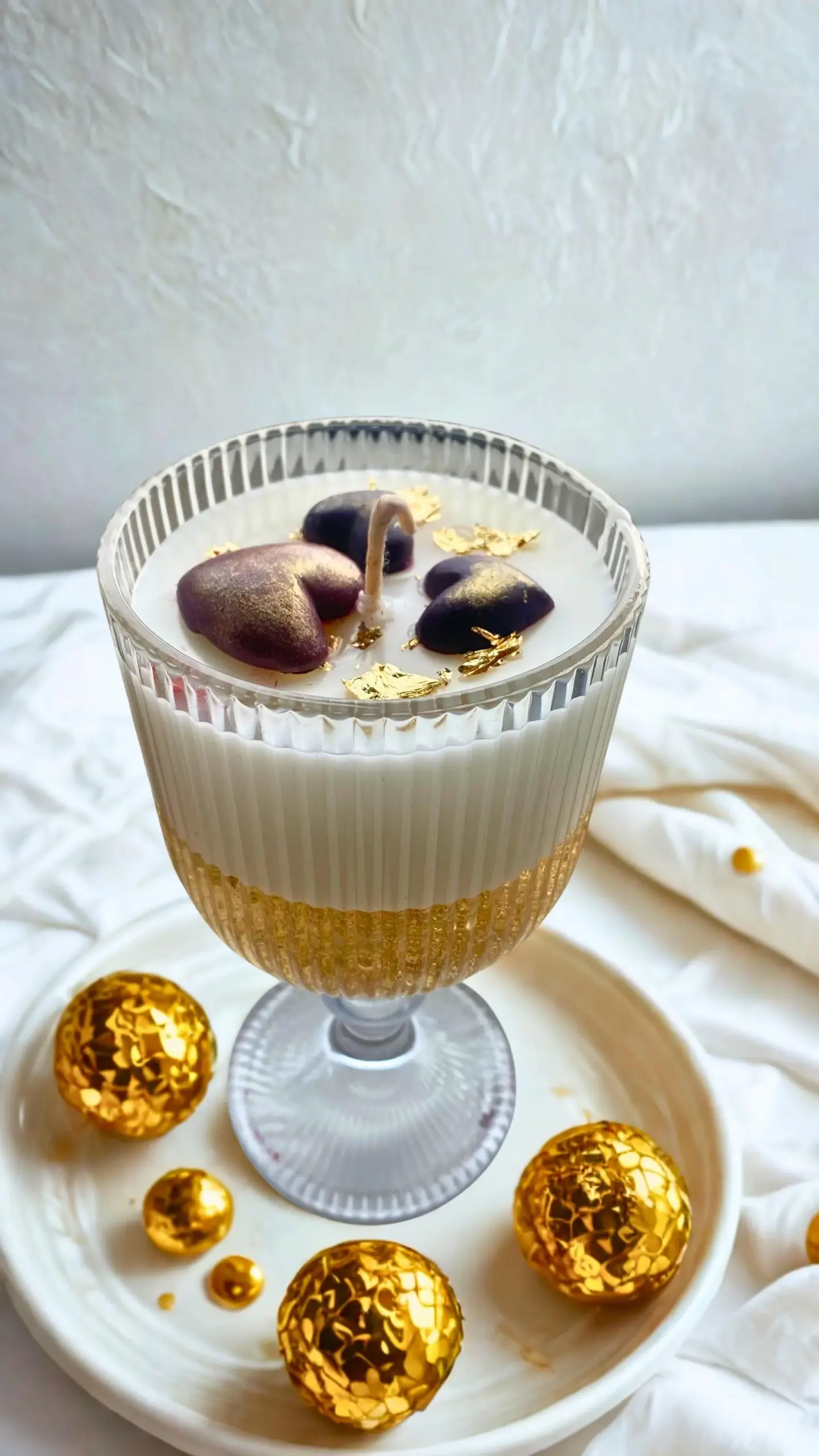 •Vessel: Elegant gold-rimmed glass cup